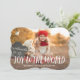Célébrez la saison avec un carte photo de vacances customisé! Ce design carte photo saisonnier est orné d'une couverture de police "joy to the world" et d'un motif rouge et noir à l'envers.