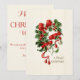 Carte de Noël Vintage personnalisable qui comporte un voûte décoré de saints et de baies et un ruban rouge.