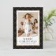 Elégante carte de Noël Joyeux noir et or. Personnalisez facilement cette carte de vacances moderne avec votre photo et votre texte.