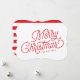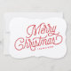 Jolie écriture avec les mots "Joyeux Noël" orne cette simple mais festive carte de vacances rouge et blanc non photo.