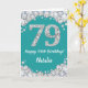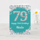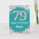 Joyeuse 79e Anniversaire Turquoise Turquoise Aqua et Carte Parties scintillant Argent avec nom personnalisé. Pour plus de personnalisation, cliquez sur le bouton "Customiser" et utilisez notre outil de conception pour modifier ce modèle.