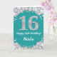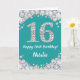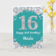Joyeuse carte de Parties scintillant Turquoise Turquoise Aqua et Silver 16e anniversaire avec nom personnalisé. Pour plus de personnalisation, cliquez sur le bouton "Customiser" et utilisez notre outil de conception pour modifier ce modèle.
