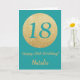 Joyeuse Carte de Parties scintillant Turquoise et Gold du 18e anniversaire avec nom personnalisé. Pour plus de personnalisation, cliquez sur le bouton "Customiser" et utilisez notre outil de conception pour modifier ce modèle.