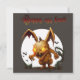 Cette carte de Pâques est plutôt décalée et humoristique, avec un lapin à l'allure zombie qui a l'air d'être sorti tout droit d'un film d'horreur. Il a les yeux jaunes et un rire diabolique. L'arrière - plan de la carte est de couleur foncée, ce qui renforce l'atmosphère effrayante de la scène. Au-dessus du lapin, l'expression "Happy Egg Hunt" est écrite en majuscules, avec une police plutôt amusante. Malgré le côté légèrement morbide du lapin, le message reste amusant et rappelle l'esprit de la traditionnelle chasse aux oeufs de Pâques.