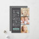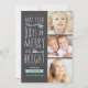 Un souhait doux pour un Joyeux et lumineux Noël est envoyé avec cette conception moderne comportant un beau lettrage de main et accentué par les rouleaux illustrés rougissent dedans et aqua réglé sur un fond gris avec l'espace pour trois photos de votre famille. Une salutation contemporaine avec du charme et espiègle à envoyer à la famille et aux amis cette saison des vacances.