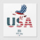 Créez une carte saisonnière avec un aigle stylisé aux ailes étirées, entouré d'étoiles.