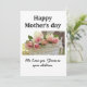 Joyeuse fête des mères | Carte de vacances Fleurs roses. Cette élégante carte de fête des mères présente de jolies fleurs roses et de la verdure, avec une typographie noire qui dit "Joyeuse fête des mères". Votre photo personnelle préférée peut être insérée à l'intérieur de la carte pour un beau souvenir