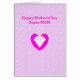 Belle carte joyeuse de fête des Mères avec un grand diamant brillant au centre du cœur et un motif de petits diamants sur fond violet. Tous les textes peuvent être personnalisés.