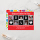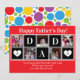 Papa va adorer cette carte personnalisée de la fête des pères. Il y a des modèles pour 5 de vos photos préférées des enfants dans un motif en bloc avec P A P A écrit entre les deux et un cœur de chaque côté avec l'année. En bas, il y a un message personnel pour Papa. Utilisez-le tel quel ou ajoutez votre propre message. Personnalisez avec les noms des enfants en dessous. Le fond est rouge et le verso est un motif de points de différentes tailles rouges, bleus, jaunes et verts.