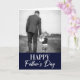 Joyeuse Fête des Pères Une photo Carte de Fête des Pères bleu marine moderne. Personnalisez ce design personnalisé avec votre propre photo et message intérieur.