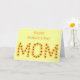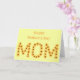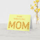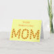 Faites savoir à votre mère ce qu'elle veut dire pour vous avec cette carte de voeux personnalisée pour elle. Le mot, MOM, est écrit dans un arrangement de tournesols jaunes, par CherylsArt. Il y a un verset inspirant à l'intérieur que vous pouvez utiliser, ou vous pouvez customiser le message avec vos propres mots, sur les modèles fournis. Merci pour faire du shopping CherylsArt sur Zazzle.