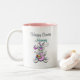 Joyeuse Maman De Pâques Avec Un Gros Lapin Présentant Un Panier D'Oeufs Et De Goodies De Pâques. Musique à deux tons