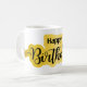 Célébrez la journée spéciale de quelqu'un avec cette chic tasse Happy Birthday avec un script noir audacieux sur une bannière jaune joyeuse. Parfait pour un cadeau d'anniversaire ou une fête !