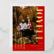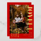 Une carte de vacances moderne rouge avec le texte ludique "Joy ful" sur le devant. Ajoutez votre nom de famille et téléchargez votre propre photo pour la rendre unique. Le dos est assorti au même arrière - plan rouge pour un style propre et cohésif.