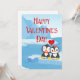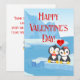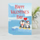 Notre carte de vœux pour la Saint-Valentin Our Happy Valentine's Day Penguin Pair est un moyen mignon de partager votre amour en ce jour spécial. Le devant de la carte plate présente un fond arctique, avec de la glace flottant dans la mer, et un manchot mâle et femelle assis sur de la glace. Le texte indique "Joyeuse Saint-Valentin".