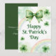 Célébrez la St. Patrick's Day avec cette carte de vœux festive présentant un design irlandais joyeux. Parfaite pour les amis, la famille, les collègues ou les clients, cette carte est idéale pour répandre la chance, la joie et les vibrations de trèfle le 17 mars. Un excellent choix pour offrir, envoyer ou ajouter à une célébration de la St. Patrick's Day.