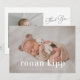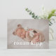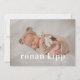 Carte faire-part de naissance simple avec la photo de votre nouveau-né avec le nom en gras. Il y a une police de script qui dit "nous introduisons joyeusement" en plus de lui. Vous pouvez ajouter une autre photo et un message au dos.