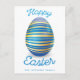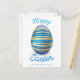 Carte postale Happy Easter personnalisée avec oeuf de Pâques bleu et texte personnalisable où vous pouvez ajouter votre nom de famille sur arrière - plan blanc