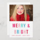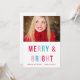 Cette joyeuse carte de Noël est dotée d'une police sans-serif audacieuse et moderne aux couleurs vives, allant du rose et du rouge à la mousse de mer et au bleu ciel. La pièce maîtresse de cette carte est votre photo ! Le lettrage aux couleurs vives se démarque de l'arrière - plan blanc vif et vous plonge dans l'esprit des fêtes !