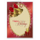 Une belle carte de Noël non religieuse. Cloches dorées avec rubans rouges. Envoyez vos voeux de vacances avec cette carte traditionnelle élégante.