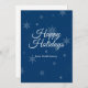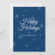 Carte de Joyeuses Fêtes de couleur bleue avec des flocons de neige blancs. Carte de Joyeuses Fêtes de votre famille. Carte texte personnalisable