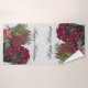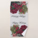 Joyeuses vacances avec Poinsettias est à la fois belle et utile. Une image de vie morte avec des arrangements floraux poinsettia et une bougie. Sur la serviette de bain seulement est le texte Happy Holidays.
