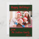 Joyeuses Fêtes Famille Photo Carte de Vœux Plate. Carte de vœux Joyeuses Fêtes en vert avec texte rouge sur le devant de la carte. Personnalisez les mots à votre style. La carte présente une calligraphie script sur le devant et un type serif simple au dos. Envoyez un vœu de Noël à vos proches avec une photo de famille pour que famille et amis puissent voir comment vous et vos enfants allez cette année. Améliorez le message à l'intérieur pour refléter votre propre style.