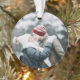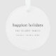 Un ornement photo de vacances élégant avec typographie classique "vacances les plus heureuses" en noir sur un arrière - plan blanc simple et propre. La photo et le texte peuvent être facilement customisés pour une touche personnelle. Un design de Noël simple, minimaliste et contemporain pour se démarquer de cette période de vacances ! L'image montrée n'est à des fins d'illustration que pour être remplacée par votre propre photo. L'image de l'espace réservé est celle d'un jeune couple heureux qui s'embrasse et se donne un baiser d'eskimo avec une toile de fond enneigée en hiver.