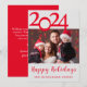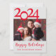 Joyeuses Fêtes Photo Carte de Noël. Carte de noël rouge et blanc avec votre photo de famille préférée à partager avec des amis et des parents. Comprend la typographie de script et la grande écriture 2024. Customisez avec votre style personnel.