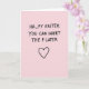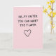 Cette carte est sur un fond rose blush doux qui donne une impression de douceur et d'invitation, avec une pointe de flirt 🌷. Centré près du haut, un lettrage épais dessiné à la main en noir indique « HA_PY EASTER », laissant un espace notable où une lettre devrait se trouver. Juste en dessous, le même texte noir continue avec « VOUS POUVEZ INSÉRER LE P PLUS TARD », transformant la lettre manquante en un petit coup de coude coquin entre amis proches ou un couple 🐰. Les lettres semblent légèrement inégales et décontractées, comme une note rapide griffonnée avec un marqueur, ce qui rend la blague plus intime. Le texte noir fort se détache nettement sur le fond rose pâle, gardant vos yeux sur le message et l'espace vide. Plus bas sur la carte, un simple contour de cœur noir est centré, faisant écho au style de ligne décontracté des mots et ajoutant une touche tendre