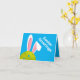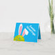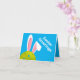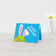 Carte postale mignonne de lapin de Pâques bleu avec vrai pickleball. Texte personnalisé à l'avant et à l'intérieur.