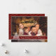 Un design moderne de carte de Noël avec votre photo de famille remplissant le visage de la carte. Décor d'art moderne et moderne sapin de Noël avec bande de texte rouge foncé pour vos mots.