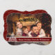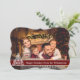 Un design moderne de carte de Noël avec votre photo de famille remplissant le visage de la carte. Décor d'art moderne et moderne sapin de Noël avec bande de texte rouge foncé pour vos mots.