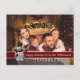 Un design moderne de carte de Noël avec votre photo de famille remplissant le visage de la carte. Décor enneigé amusant avec bande de texte rouge foncé pour vos mots. Vous pouvez personnaliser l'accueil de Noël à l'arrière, votre adresse de retour et vos noms en script près du bas avec de l'espace pour ajouter une note personnelle manuscrite.
