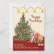 Happy Holidays Cute Irish Wolfhound Christmas Card est festive et élégante. Des ornements aquarelles peints à la main, sur un arbre surmonté d'une étoile et des cadeaux spéciaux, même un os pour le chien envoient un message joyeux de voeux. Ce mignon loup irlandais porte son chapeau de santa rouge spécial. L'arrière - plan du design est une bande jaune et crème avec une guirlande d'étoiles dorées brillantes. Tout le texte est modifiable, des "happy howlidays" au message de Noël avec le nom de votre famille et de votre chien. Il suffit d'utiliser l'option PERSONNALISER pour en faire votre propre. Le dos de la carte est un rouge assorti avec la guirlande et le message de vacances modifiable. Vous trouverez cette belle carte de Noël ainsi que de nombreuses autres races de chiens dans notre collection CUTE FESTIVE DOG THEME HAPPY HOWLIDAYS dans notre magasin. Message si vous avez besoin d'aide.