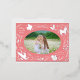 Joyeuses fêtes Noël Photo Woodland Doodle Foil Carte postale Foil Christmas Postcard présente votre photo préférée entourée d'animaux de bois mignons et d'éléments floraux hivernaux et le tout lié avec un arc de coquette fantaisiste avec le texte "Wishing you a happy holiday" dans la typographie moderne sur un arrière - plan rose et personnalisé avec votre nom de famille. Au verso, ajoutez votre message personnalisé. Parfait pour la famille et les amis pour Noël et les vacances. Créé par Evco Studio www.zazzle.com/store/evcostudio #zazzlemade #zazzle #evcostudio #christmascards #cartes de voeux #cartes de voeux #photochristmascards