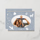Joyeuses fêtes Noël Photo Woodland Doodle Foil Carte postale Foil Christmas Postcard présente votre photo préférée entourée d'animaux de bois mignons et d'éléments floraux d'hiver et le tout lié avec un arc de coquette fantaisiste avec le texte "Wishing you a happy holiday" dans la typographie moderne sur un arrière - plan bleu pâle et personnalisé avec votre nom de famille. Au verso, ajoutez votre message personnalisé. Parfait pour la famille et les amis pour Noël et les vacances. Créé par Evco Studio www.zazzle.com/store/evcostudio #zazzlemade #zazzle #evcostudio #christmascards #cartes de voeux #cartes de voeux #photochristmascards