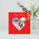 Photo de coeur de famille personnalisée et boules dorées sur carte de voeux des Fêtes rouges. Idéal pour Noël !