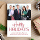 Carte de vacances d'entreprise élégante et moderne pour montrer à vos clients l'appréciation de cette saison de Noël avec une photo de votre équipe d'entreprise et "Happy Holidays" en écriture rouge saisonnière et une typographie unique. Personnalisez votre ligne de signature et votre nom d'entreprise.