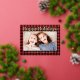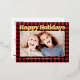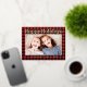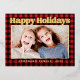 Le design est composé de rouge et noir plaid/motif tartan. Ajoutez une photo personnalisée de vous avec le reste de votre famille. La photo est ornée ci-dessus de salutations en or unique. Pour aligner votre photo, démasquez le modèle photo en cliquant sur le bouton de démasquage. Une fois la photo alignée, sélectionnez la forme SVG et votre photo, puis cliquez sur masque. Disponible ici : http://www.zazzle.com/store/selectpartysupplies