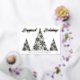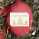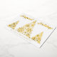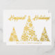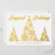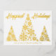 Un script d'or chic compagnie carte de feuille d'or de vacances avec 3 beaux arbres en flocons d'or en dessous Happiest Holidays écrit en écriture cursive. Ajoutez votre nom d'entreprise ci-dessous. Personnalisez ces cartes de papier doré d'entreprise pour le marketing client en hiver.