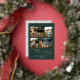 Carte de vacances moderne en vert foncé, customisée de quatre images de votre choix dans un cadre doré délicat - véritable feuille d'or pour Joyeux Noël. La couleur et la couleur Arrière - plans des bandes sur le dossier peuvent être modifiées dans l'outil de conception si vous le souhaitez.