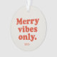 Joyeuses vibes seulement cette saison des fêtes ! Célébrez toutes les bonnes choses avec ce joli ornement rouge et blanc cassé rétro avec votre photo et texte personnalisé. Le type de retour en arrière dit "joyeuses vibes seulement" et il a également de la place pour le nom, l'année ou le message. Les teintes amusantes du rouge rétro et du blanc cassé sont également une touche vintage. Un excellent moyen de célébrer l'année qui a été !
