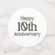 Ce confetti comporte les mots "Joyeux 10e anniversaire" dans une police d'impression unique avec des lettres d'or noir contour. Chaque pack contient 60 pièces imprimées sur papier standard semi-brillant de 110 livres de poids avec impression couleur double face. Parfait pour tous les anniversaires, mariages, anniversaires et autres moments marquants.