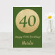Joyeux 40e Anniversaire Carte Pailletée Verte et Dorée avec nom personnalisé. Pour une personnalisation supplémentaire, veuillez cliquer sur le bouton "Personnalisez-le" et utilisez notre outil de conception pour modifier ce modèle.