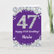Joyeux 47e Anniversaire Carte Pailletée Violet et Argent avec nom personnalisé. Pour une personnalisation plus poussée, veuillez cliquer sur le bouton "Personnaliser" et utiliser notre outil de conception pour modifier ce modèle.