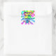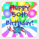 Un bouquet de ballon coloré et lumineux sur un arc-en-ciel de rubans colorés tourbillonne pour vous permettre de personnaliser avec n'importe quel âge d'anniversaire. Montré "Joyeux 50ème anniversaire !" Un autocollant coloré et amusant occasion spéciale! Montré est l'autocollant carré.