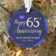 Beau bleu Joyeux 65e anniversaire ornement. Faux feuille sur 65ème et comme cadre de bordure. Arrière - plan à huile bleue créé par Valarie Wade. Petit bijou de coeur bleu dans le coin supérieur. Les noms et les dates sont réglables.