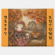 La jolie photo d'une fille, chat, chariot de citrouilles et d'arbres pleins de feuilles, est présentée sur cet aimant rectangle de scène de l'automne. Avec un message, "Happy Autumn", cet aimant fait une belle décoration pour Fall ! Ou offrez-le comme un petit cadeau pour la famille et les amis.
