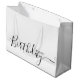 Ce grand sac cadeau comporte une élégante typographie d'anniversaire heureux en noir sur arrière - plan blanc.